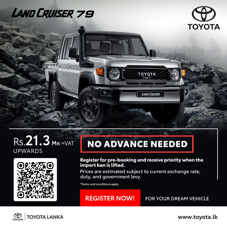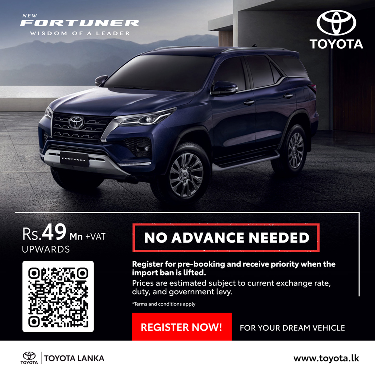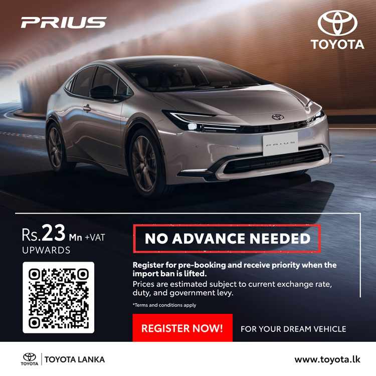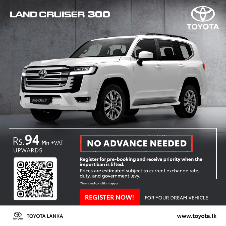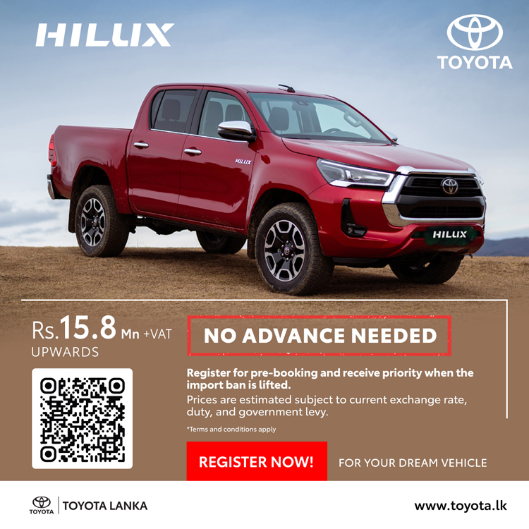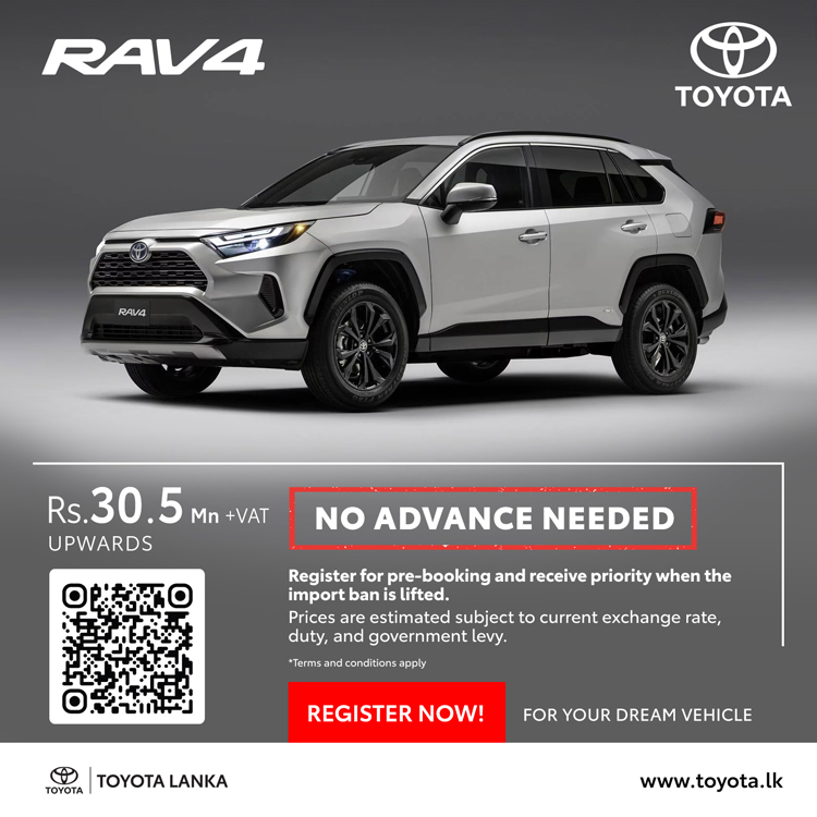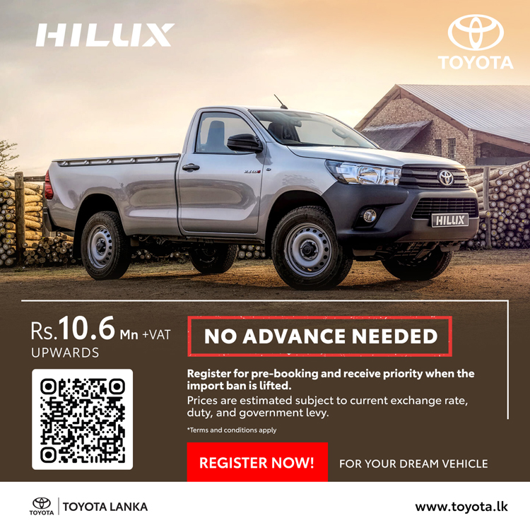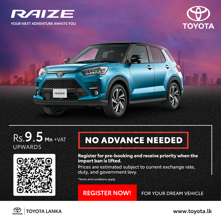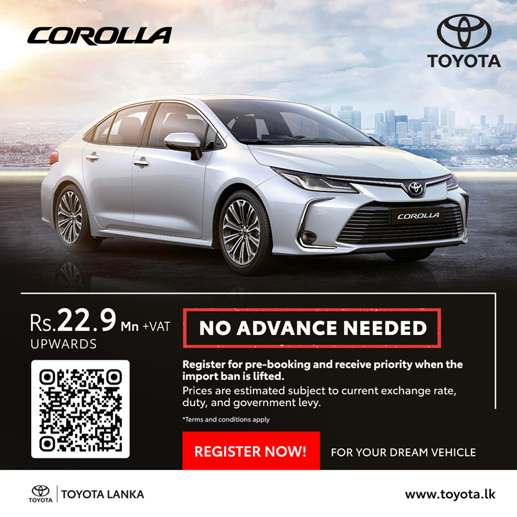 ටොයොටා වාහන සඳහා මෙරට බලයලත් අලෙවි නියෝජිතයා වන ටොයොටා ලංකා සමාගම, එලෙස වාහන ආනයන සීමා ලිහිල් කළ සැණින් මෙරටට ගෙන්වීමට නියමිත ටොයොටා මෝටර් වාහන සඳහා මේ වන විට පෙර ඇණවුම් භාර ගැනීම් ආරම්භ කර ඇති අතර ඒවායේ නවතම මිල ගණන් ද අනාවරණය කර තිබේ.