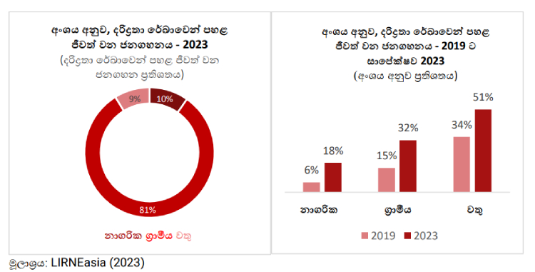 LIRNEasia නම් කලාපීය චින්තන පර්ෂදය විසින් මෑතකදී සිදු කරන ලද ජාතික නියෝජිත (ශ්රී ලංකාවම නියෝජනය වන පරිදි කරන ලද) සමීක්ෂණයකින් පෙන්නුම් කළේ දරිද්‍රතා රේඛාවට පහළින් ජීවත් වන ශ්‍රි ලාංකීය ජනගහනය මිලියන 4කින් වැඩි වී ඇති බවයි. 2019 දී ශ්රී ලාංකිකයින් මිලියන 3ක් දරිද්රතාවයෙන් පෙළුනු අතර, දැන් (2023) එය මිලියන 7ක් (ජනගහනයෙන් 31%) බවට පත් වී ඇත.