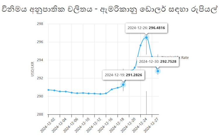 2024 දෙසැම්බර් 26 දින වන විට රු. 296.48 ක් දක්වා ඩොලරයේ මධ්ය අගය ඉහළ ගොස් තිබුණු අතර අද (30) වන විට එය රු. 292.75 ක් දක්වා පහළ ගොස් ඇත.