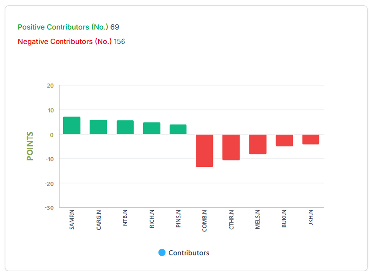 එහිදී සියලු කොටස් මිල දර්ශක අගය ඒකක 96.43ක පහළ යාමක් වාර්තා කළ අතර S&P SL20 දර්ශකය ඒකක 21.72ක පහළ යාමක් වාර්තා කළේය. ඒ අනුව දිනයේ දී ගනුදෙනු අවසානයේ දී සියලු කොටස් මිල දර්ශක අගය ඒකක 23,773.64ක් ලෙසත් S&P SL20 දර්ශක අගය ඒකක 6,721.47ක් ලෙසත් සටහන් වුණි.