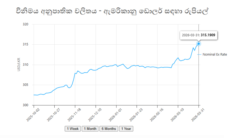 මෙලෙස ඩොලරයේ අගය රු.315 සීමාව ඉක්මවා ගොස් ඇත්තේ 2024 පෙබරවාරි 01 දිනෙන් පසු පළමු වරට අද (31) දිනයේ දීය.