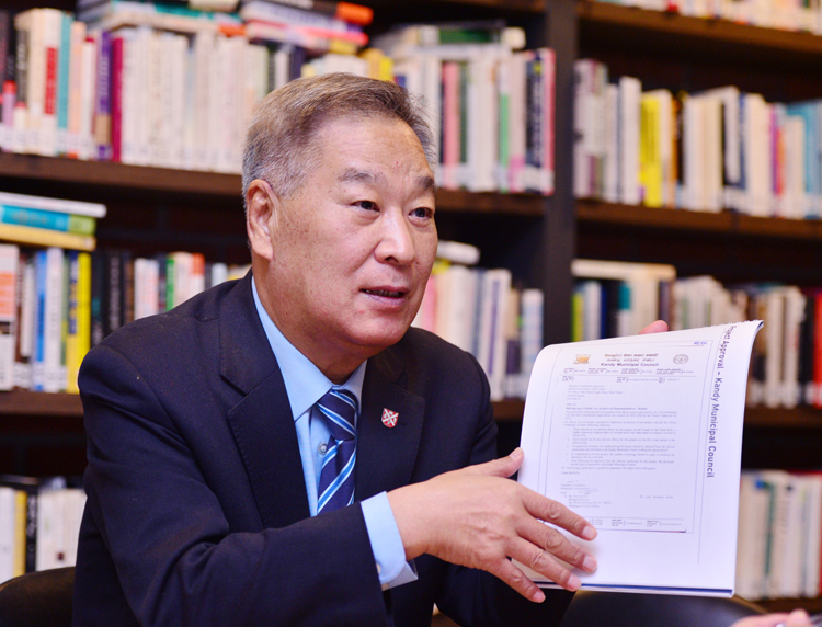 ඡායාරූපයෙන් දැක්වෙන්නෙ Sky Asia හි සභාපති Yoo Sun-ha කොරියාවේ සෝල් නුවර දී Korean Herald පුවත් සේවය සමඟ පැවති සම්මුඛ සාකච්ඡාවකදී මහනුවර කේබල් කාර් ව්‍යාපෘතියට අදාළ ලේඛන පෙන්වන ආකාරයයි.