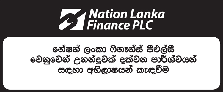 2011 අංක 42 දරන මුදල් ව්යාපාර පනත යටතේ බලපත්රලාභී මුදල් සමාගමක් වන නේෂන් ලංකා ෆිනෑන්ස් පීඑල්සී හි ආයෝජනය කිරීම සඳහා ආයෝජකයන් හෝ ආයෝජකයන්ගේ එකමුතු සඳහා ශ්රී ලංකා මහ බැංකුව විසින් අභිලාෂ ප්රකාශ කිරීම සඳහා ආරාධනා කර සිටී.