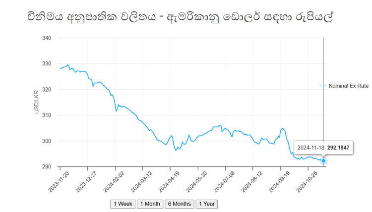 ශ්රී ලංකා මහ බැංකුවේ දෛනික විනිමය අනුපාතික සටහනට අනුව අද (18) දිනයේ දී එක්සත් ජනපද ඩොලරයක නිරූපිත එතැන් විනිමය අනුපාතිකය රු. 292.19 ක් ලෙසින් වාර්තා කර තිබේ.