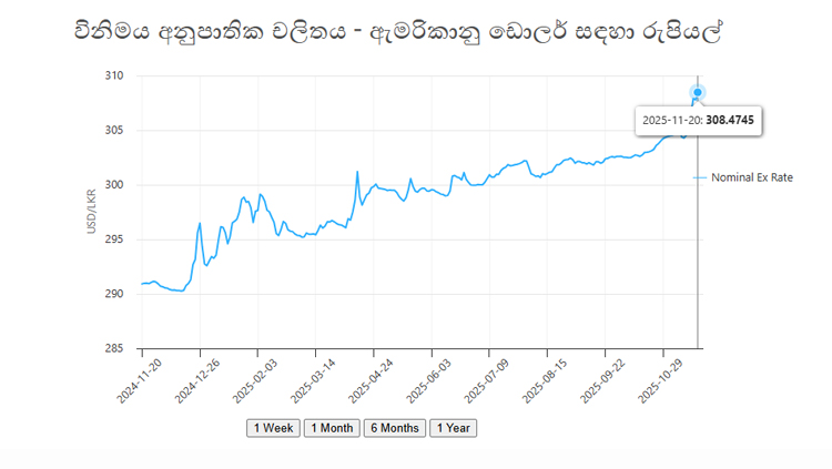 2025 වසරේ නොවැම්බර් 14 දක්වා කාලය තුළ දී ශ්රී ලංකා රුපියල එක්සත් ජනපද ඩොලරය හමුවේ 4.1%කින් අවප්රමාණය වී ඇති බව ශ්රී ලංකා මහ බැංකුව පසුගිය සතියේ දී කියා සිටියේය.