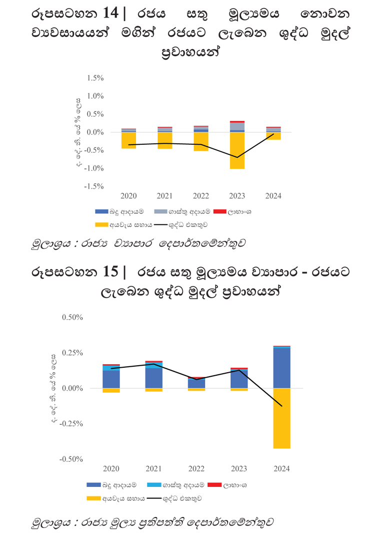 2020 සිට 2023 දක්වා කාලය තුළ මූල්ය අංශයේ රජය සතු ව්යාපාරවලට අයවැය ආධාර සුළු වශයෙන් (උදා - ඉතුරුම් සහනාධාර සහ රක්ෂණ නිෂ්පාදින සඳහා) ලැබුණු නමුත්, 2024 වසරේ දී රජය සතු ප්රධාන බැංකු දෙකකට සැලකිය යුතු මූල්ය දායකත්වයක් ලබා දෙන ලද්දේ රාජ්ය සහ මූල්යමය නොවන රජය සතු ව්යාපාර ණය පුළුල් ප්රතිව්යූහගත කිරීමේ වැඩසටහනේ කොටසක් වශයෙනි.