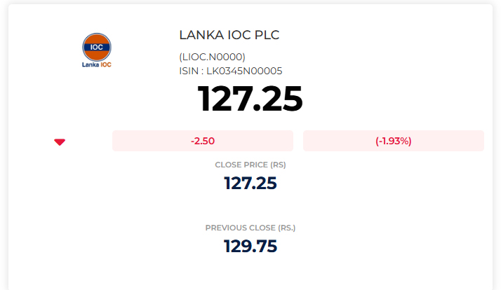 මේ අතර අද (20) දිනයේ දී ලංකා IOC සමාගමේ කොටස් මිලෙහි පහළ යාමක් දක්නට ලැබී තිබේ.