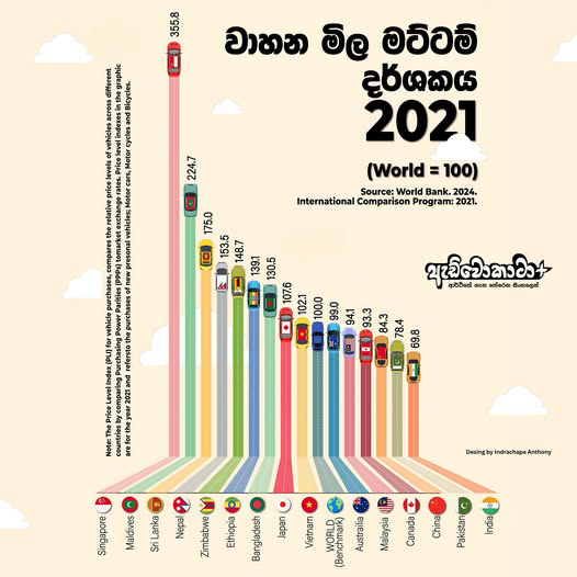 2021 ලෝක බැංකු වාහන මිල මට්ටම් දර්ශකයට අනුව, වාහනයක් මිලදී ගැනීමට වඩාත්ම මිල අධික රටවල් අතර ප්රමුඛ ස්ථානයකට ශ්රී ලංකාව පත්ව තිබේ.