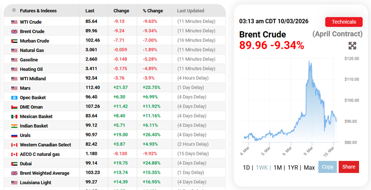 ඒ අනුව ශ්‍රී ලංකා වේලාවෙන් අද (10) පස්වරු 1.42 පමණ වන විට ලෝක වෙළෙඳපොළේ බ්‍රෙන්ට් බොරතෙල් බැරලයක මිල ඩොලර් 90 සීමාවෙන් මෙපිටට පැමිණ තිබෙනු දැකිය හැකිය.