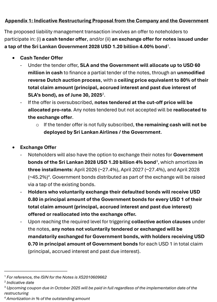 ශ්රී ලංකාවේ විදෙස් ණය ප්රතිව්යූහගතකරණ ක්රියාවලිය යටතේ මෙය තීරණාත්මක ණය ප්රතිව්යූහගත කිරීමක් වන අතර මේ දක්වා S&P Global Ratings ආයතනය ශ්රී ලංකාවේ ණය ශ්රේණිය ඉහළ නොදැමීමට, ශ්රීලංකන් ගුවන්සේවය විසින් නිකුත් කර ඇති මෙම බැඳුම්කරය ප්රතිව්යූහගත කර නොතීබීම හේතු වී ඇත.