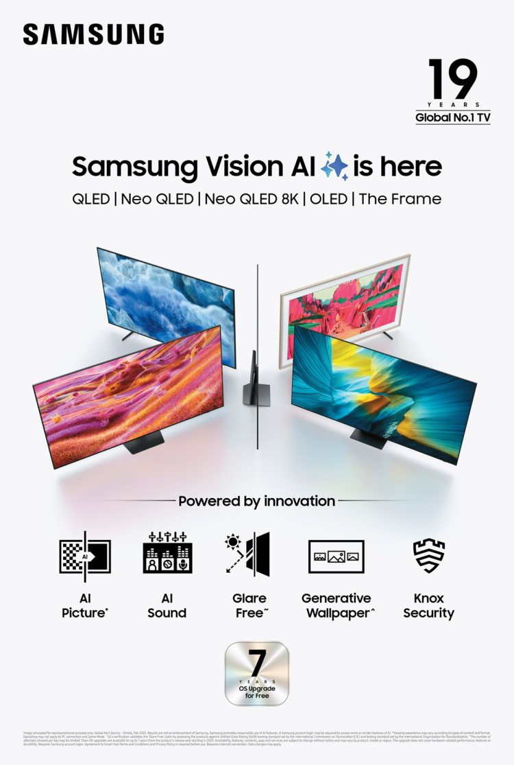 AI තාක්ෂණයෙන් සන්නද්ධ රූපවාහිනී තිරයන්ගෙන් යුත් නිෂ්පාදන යුගයක් ලොවට හඳුන්වා දෙමින් නවතම අත්දැකීමක් ලබා ගැනීමේ අවස්ථාව උදා කර දී ඇති සැම්සුන් හි මෙම නවතම Samsung Vision AI විශේෂාංගය භැද Neo QLED, OLED සහ QLED රූපවාහිනී නිෂ්පාදන මාදිලි තුලින්ද අත් විඳිය හැකිය. මෙම නව්යකරණ තාක්ෂණය සිය රූපවාහිනී නිෂ්පාදන අතරට හඳුන්වා දීම තුලින් සිය පාරිභෝගිකයින්ාග් අත්දැකීම් හළ නැංවීමට මෙන්ම ස්මාර්ට් ජීවිතයක උරුමය ඔවුන් වෙත ලබා දීමට සැම්සුන්හි කැපවීම මනාව අවධාරණය කරයි.