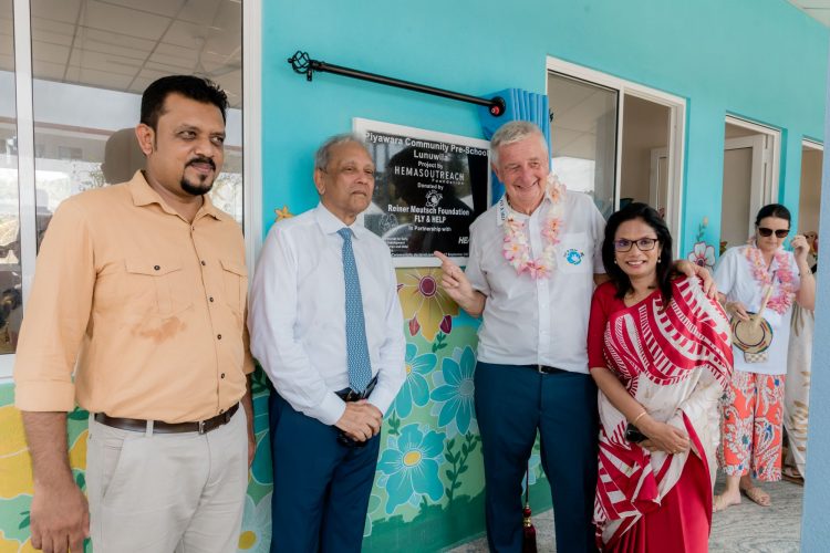 (වමේ සිට) ෆ්ලයි ඇන්ඩ් හෙල්ප් පදනමේ සහ හේමාස් අවුට්රීච් පදනමේ සාමූහික ප්රයත්නයක ප්රතිඵලයක් වන ෆ්ලයි ඇන්ඩ් හෙල්ප් 1,000 වන ගෝලීය පාසල විවෘත කිරීම නිමිත්තෙන් වූ සමරු ඵලකය නිරාවරණය කිරීමේ අවස්ථාවට එක් වූ කාන්තා හා ළමා කටයුතු නියෝජ්ය අමාත්ය වෛද්ය නාමල් සුදර්ශන, හේමාස් අවුට්රීච් පදනමේ සභාපති සහ හේමාස් සමූහ ව්යාපාරයේ සමූහ අධ්යක්ෂ අබ්බාස් යුසුෆලි, ෆ්ලයි ඇන්ඩ් හෙල්ප් පදනමේ නිර්මාතෘ Rainer Meutsch සහ හේමාස් අවුට්රීච් පදනමේ විධායක අධ්යක්ෂිකා ශිරෝමි මාසකොරාළ යන මහත්ම මහත්මීන්