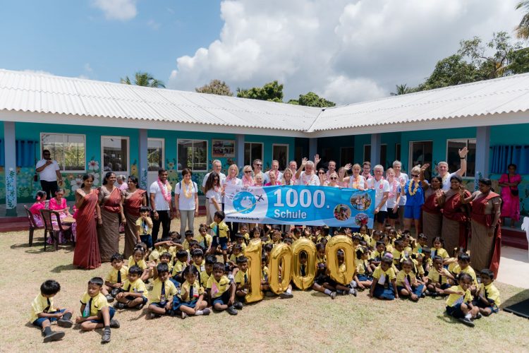 ඡායාරූ විස්තරය - (වමේ සිට) ෆ්ලයි ඇන්ඩ් හෙල්ප් නිර්මාතෘ Rainer Meutsch, හේමාස් අවුට්රීච් පදනමේ විධායක අධ්යක්ෂිකා ශිරෝමි මාසකෝරාළ, ෆ්ලයි ඇන්ඩ් හෙල්ප් නියෝජ්ය සභාපති Silanca Weihmann සහ හේමාස් අවුට්රීච් පදනමේ සභාපති සහ හේමාස් සමූහ ව්යාපාරයේ සමූහ අධ්යක්ෂ අබ්බාස් යුසුෆලි යන මහත්ම මහත්මීන් 1,000 වන ගෝලීය පාසල විවෘත කරමින්