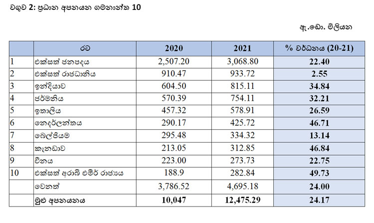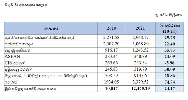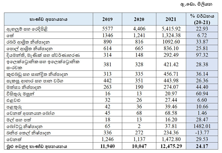 2021 අපනයන ආදායම ඩොලර් බිලියන 15 ඉක්මවයි