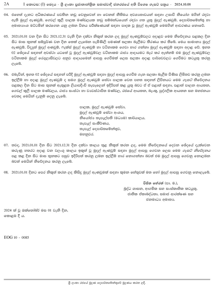 මෙම සම්පූර්ණ අතිවිශේෂ ගැසට් පතුය පහතින් දැක්වේ.
