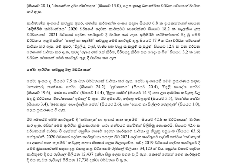 2021 දෙවන කාර්තුවේ දී ශ්‍රී ලංකා ආර්ථිකයේ සියයට 12.3 ක වර්ධනයක්