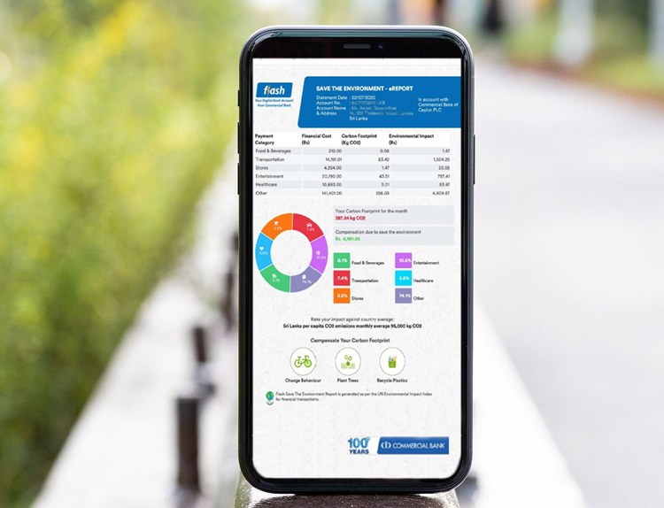 කොමර්ෂල් බැංකුවේ ‘ෆ්ලෑෂ්’ ඇප් සේවාව මගින් ගනුදෙනුකරුවන්ගේ පාරිසරික පිරිවැය ගණනය කරන අතරම වියදම් කළමනාකරණය සඳහා මග පෙන්වයි කොමර්ෂල් බැංකුවේ නව්ය වූ ඩිජිටල් බැංකුකරණ ඇප් සේවාව වන ‘ෆ්ලෑෂ්’ මීට පෙර වෙළඳපොළේ නොතිබූ අති නවීන පහසුකම් සහිතව වැඩිදියුණු කර තිබෙන අතර මෙමගින් ගනුදෙනුකරුවන්ට තමන් සිදුකරන වියදම් වලට අනුව පරිසරයට සිදුවන බලපෑම ගණනය කරගැනීමේ අවස්ථාව ලබාදී ඇත. මේ…