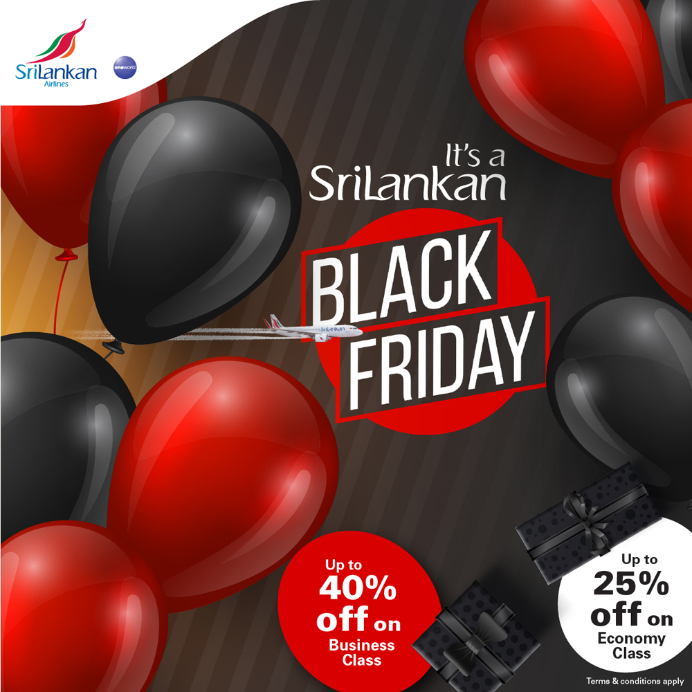 ශ්රීලංකන් ගුවන් සේවය මගින් මෙම සිකුරාදාට යෙදෙන Black Friday හෙවත් සාප්පු සවාරි සහ සේල් සඳහා සුවිශේෂී දිනයක් වන ‘කලු සිකුරාදා’ සමරමින්, ගමනාන්ත 37 සඳහා සිය වෙබ් අඩවිය (www.srilankan.com) ඔස්සේ ගුවන් ටිකට්පත් මිලදී ගැනීමේදී සුවිශේෂී වට්ටම් අතිවිදීමට අවස්තාව සලසා දී ඇත. මෙසේ මිලදී ගන්නා ටිකට්පත්, පෙබරවාරි 1, 2020 සිට දෙසැම්බර් 31, 2020 දක්වා සංචාරය සඳහා වලංගු…