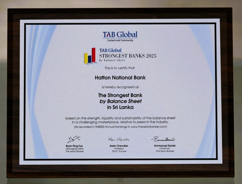 ශ්රී ලංකාවේ ප්රමුඛතම පුද්ගලික බැංකුවක් වන හැටන් නැෂනල් බැංකුව 2025 වසරේ ශ්රී ලංකාවේ ශක්තිමත්ම බැංකුව ලෙස TAB Global විසින් නම් කර ඇත. TAB Global හි ලොව විශාලතම සහ ශක්තිමත්ම බැංකු 1000 ශ්රේණිගත කිරීමේ නවතම වාර්තාව නිකුත් කිරීමෙන් පසු HNB මෙසේ පිළිගැනීමට ලක් වූ බව බැංකුව විසින් නිවේදනය කරන ලදී. ලොව පුරා නියාමකයින්, විශ්ලේෂකයින් සහ ජාත්යන්තර…
