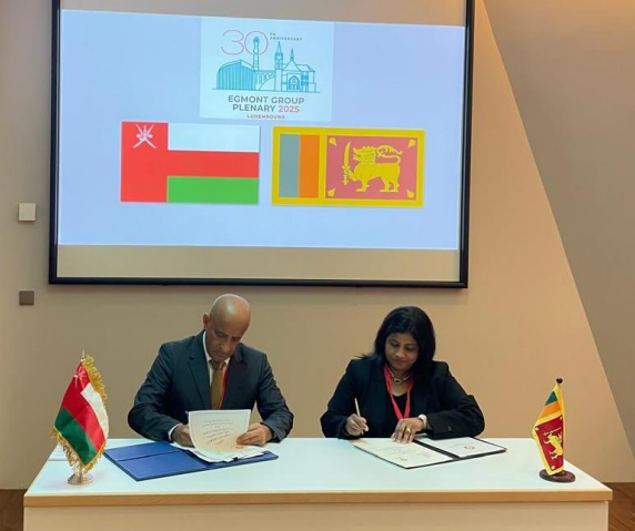 ශ්රී ලංකා මූල්ය බුද්ධි ඒකකය2025 ජූලි 09 වන දින ලක්සම්බර්ග් හි පැවති එග්මන්ට් සමූහයේ 31 වන සමුළුවේ දී, ඕමාන රාජ්යයේ මූල්ය තොරතුරු සඳහා වූ ජාතික මධ්යස්ථානය සමඟ අවබෝධතා ගිවිසුමකට එළැඹිණි. 2006 අංක 6 දරන මුදල් ගනුදෙනු වාර්තා කිරීමේ පනතේ විධිවිධාන ප්රකාරව, මුදල් විශුද්ධිකරණය, ඒ ආශ්රිත මූලික වැරදි සහ ත්රස්තවාදයට මුදල් සැපයීමේ වරද සම්බන්ධයෙන් මූල්ය බුද්ධි…