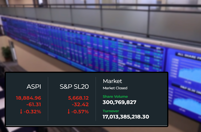 කොළඹ කොටස් වෙළෙඳපොළ මිල දර්ශකවල පහළ යාමක් අද (16) දින දක්නට ලැබුණ ද ආයෝජක ක්රියාකාරීත්වයේ කැපීපෙනෙන සක්රීය බවක් දිනය පුරා දක්නට ලැබුණි. එහිදී දිනයේ තුල සියලු කොටස් මිල දර්ශකය ඒකක 61.31කින් පහළ ගොස් ඒකක 18,884.96ක් ලෙසින් සටහන් වූ අතර S&P SL20 දර්ශකය ඒකක 32.42කින් පහළ ගොස් ඒකක 5,668.12 ක් ලෙසින් සටහන් විය. සියලු කොටස් මිල දර්ශකයේ…