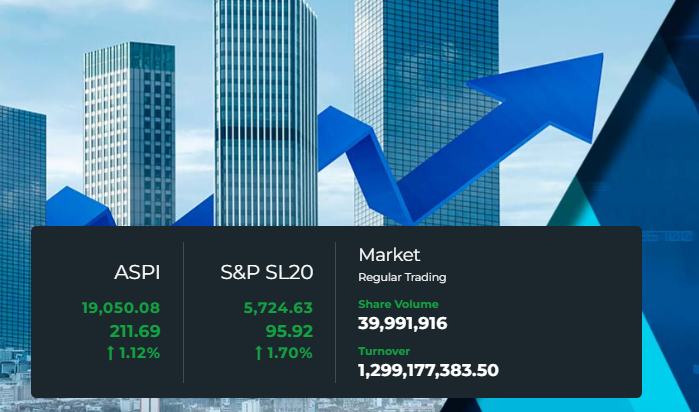 අද (15) කොළඹ කොටස් වෙළෙඳපොළ ගනුදෙනු ආරම්භ වී පැයක් ගත වීමටත් ප්රථමයෙන් සියලු කොටස් මිල දර්ශකයේ අගය ඉතිහාසයේ ප්රථම වරට ඒකක 19,000 සීමාව ඉක්ම වීමට සමත් විය. ඒ වන විට රු. බිලියන 1.29 ඉක්මවූ ගනුදෙනු පිරිවැටුමක් වාර්තා වී තිබුණි.