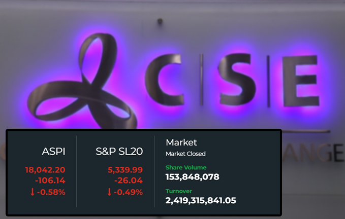 කොළඹ කොටස් වෙළෙඳපොළ මිල දර්ශක වල පහළ යාමක් අද (07) දක්නට ලැබුණි. ඒ අනුව දිනයේ ගණුදෙනු අවසානයේ සියලු කොටස් මිල දර්ශකය ඒකක 106.14කින් පහළ ගොස් ඒකක 18,042.20ක් ලෙසින් වාර්තා වූ අතර S&P SL20 දර්ශකය ඒකක 26.04කින් පහළ ගොස් ඒකක 5,339.99ක් ලෙසින් සටහන්ව තිබුණි. අද සියලු කොටස් මිල දර්ශකයේ කඩාවැටීමට මෙල්ස්ටාකෝප්, HNB, කොමර්ෂල් බැංකුව, එයිට්කන් ස්පෙන්ස්…