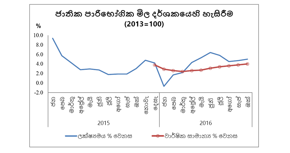 ජනලේඛන හා සංඛ්යාලේඛන දෙපාර්තමේන්තුව විසින් ගණනය කරනු ලබන ජාතික පාරිභෝගික මිල දර්ශකයේ විචලනය මගින් මනිනු ලබන උද්ධමනය, ලක්ෂ්යමය පදනම මත 2016 සැප්තැම්බර් මාසයේ දී වාර්තා කළ සියයට 4.7 හි සිට 2016 ඔක්තෝබර් මාසයේ දී සියයට 5.0 දක්වා ඉහළ ගියේය. 2016 ඔක්තෝබර් මස ලක්ෂ්යමය උද්ධමනය කෙරෙහි ආහාර කාණ්ඩය මෙන්ම ආහාර නොවන කාණ්ඩය ද දායක විය. වාර්ෂික…
