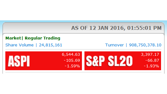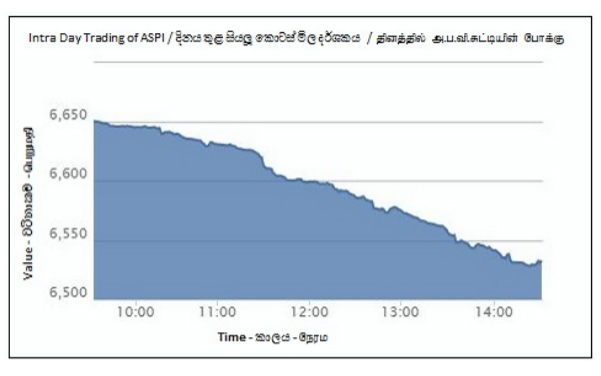 අද දින කොළඹ කොටස් වෙළෙඳපොළ ගනුදෙනු අවසන් වූයේ සියලු කොටස් මිල දර්ශක අගය ඒකක 6,534.35 ක් ලෙසිනි. මෙය ඒකක 115.97 ක හෙවත් 1.74% ක පහළ යාමකි. 2015 අගෝස්තු 24 වනදායින් පසු ඒකක 100 ක් ඉක්මවූ අගයකින් සියලු කොටස් මිල දර්ශකය පහළ ගිය පළමු අවස්ථාව මෙයයි. එසේම 2014 ජූලි 08 වනදායින් පසු ඒකක 6,550 සීමාවෙන් මෙපිටට,…
