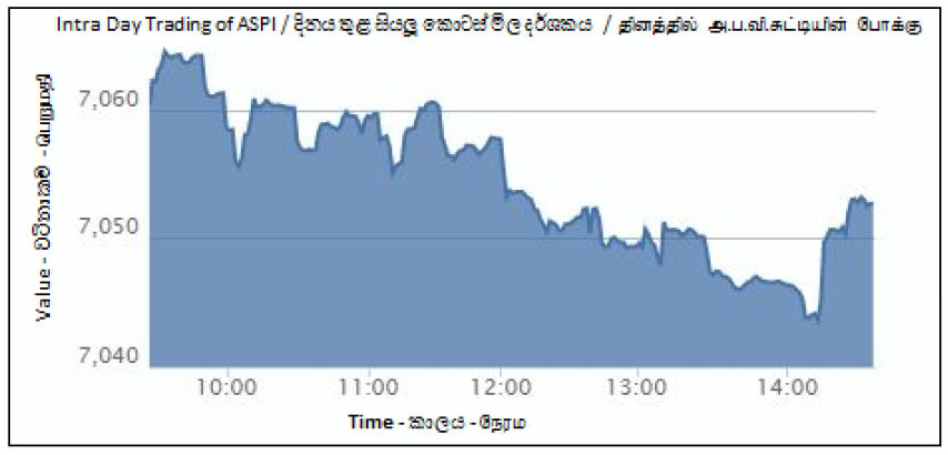 තවත් අලුත් සතියක කොටස් වෙළෙඳපොළ ගනුදෙනු අද උදෑසන 9.30 ට ආරම්භ වූ අතර සුපරුදු පරිදි අද දිනය ද අවසන් වූයේ ආයෝජකයින් හට එතරම් හිතකර නොවන මිල මට්ටම් සනිටුහන් කරමිනි. දිනය අවසානයේ දී පෙර දිනයට සාපේක්ෂව ඒකක 9.27 කින් හෙවත් 0.13% කින් සියලු කොටස් මිල දර්ශකය පහළ ගොස් තිබුණු අතර එහි අගය ඒකක 7,050.21 ක් විය….