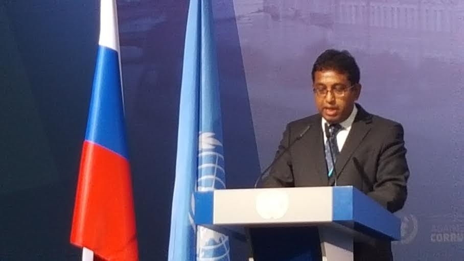 රුසියාවේ ශාන්ත පීටර්ස්බර්ග් නගරයේ මේ දිනවල පැවැත්වෙන එක්සත් ජාතීන්ගේ දූෂණයට එරෙහි සම්මුතියේ පාර්ශවකාර රටවල හයවන සමුළුවට සහභාගී වන ශ්රී ලංකා නියෝජිත පිරිසේ ප්රධානියා ලෙස ඊයේ (2015 නොවැම්බර් 3 වනදා) ශ්රී ලංකාව වෙනුවෙන් සමුළුව ඇමතූ නියෝජ්ය විදේශ කටයුතු අමාත්ය ආචාර්ය හර්ෂ ද සිල්වා මහතා සඳහන් කළේ මෛත්රීපාල සිරිසේන ජනාධිපතිවරයා හා රනිල් වික්රමසිංහ අග්රාමාත්යවරයාගේ නායකත්වයෙන් යුත් ශ්රී…