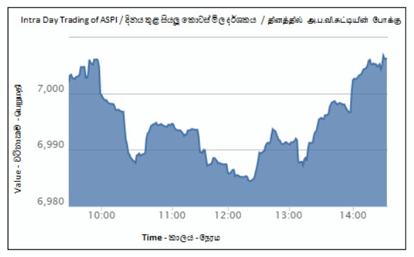 කොළඹ කොටස් වෙළෙඳපොළ සියලු කොටස් මිල දර්ශක අගය, අද දින දෛනික ගනුදෙනු ආරම්භ වී පැය භාගයකින් පමණ පසු ඒකක 7,000 සීමාවන් මෙපිටට පැමිණියේය. එහිදී උදෑසන 10.02 වන විට සියලු කොටස් මිල දර්ශකය ඒකක 6,998.97 ක් ලෙසින් සටහන් විය. මීට පෙර අවසාන වරට සියලු කොටස් මිල දර්ශක අගය ඒකක 7,000 න් මෙපිට මට්ටමක පැවතියේ පසුගිය ජූලි…