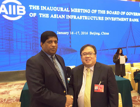 ආසියානු යටිතල පහසුකම් ආයෝජන බැංකුවේ, පළමු පාලක මණ්ඩල රැස්වීම, පසුගිය 16 දින චීන ජනාධිපති, Xi Jinping මැතිතුමාගේ ප්රධානත්වයෙන් චීනයේ බීජිං නුවරදී ආරම්භ විය. මෙම රැස්වීමේ සමාරම්භක අවස්ථාව සඳහා ශ්රී ලංකාව නියෝජනය කළේ මුදල් අමාත්ය රවී කරුණානායක මැතිතුමාය. ඊයේ (18) අවසන් වූ AIIB හෙවත් ආසියානු යටිතල පහසුකම් ආයෝජන බැංකුවේ පළමු පාලක මණ්ඩල රැස්වීමට, එම බැංකුවේ සාමාජික…