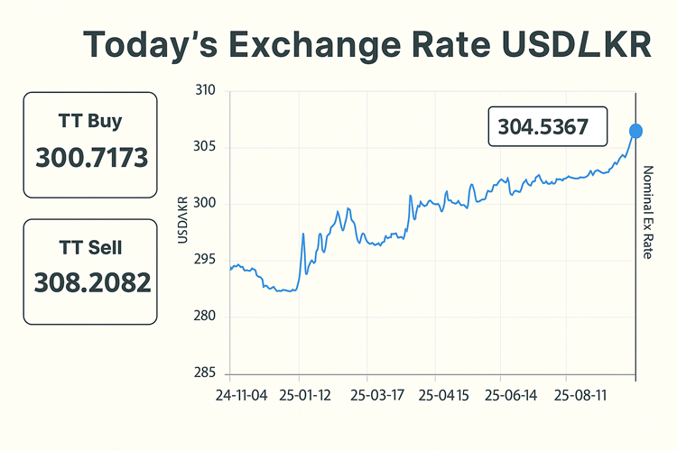 අද (04) දින ශ්රී ලංකා මහ බැංකුව විසින් ප්රකාශයට පත් කරන ලද විනිමය අනුපාතික සටහනට අනුව එක්සත් ජනපද ඩොලරයක ගැනුම් මිල රු. 300.71 ක් හා විකුණුම් මිල රු. 308.20 ක් ලෙසින් වාර්තා වී තිබේ. අද දිනයේ දී එක්සත් ජනපද ඩොලරයක එතැන් විනිමය අනුපාතිකය (USD/LKR Spot Exchange Rate) රු. 304.53 ක් ලෙසින් සටහන්ව ඇත. 2024 සැප්තැම්බර්…