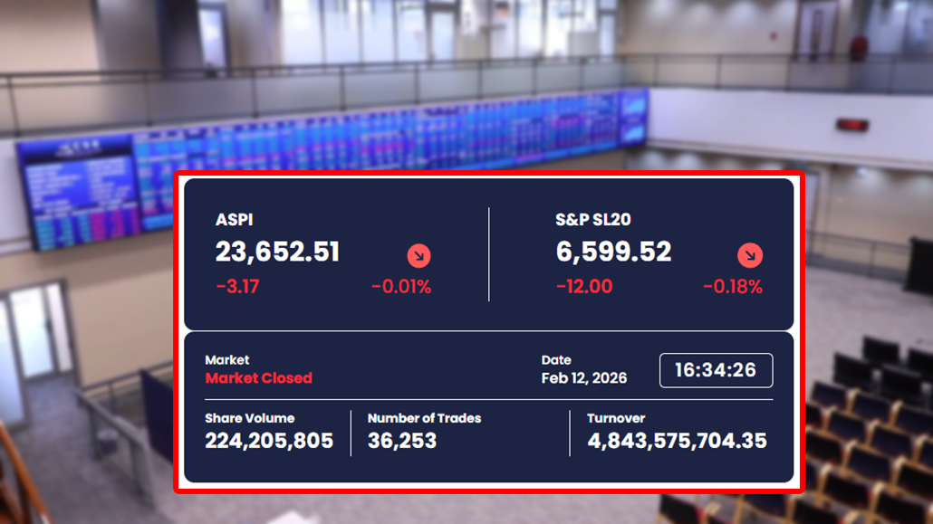 කොළඹ කොටස් වෙළෙඳපොළ ගනුදෙනු අද (11) දිනයේ දී ඉතා මන්දගාමී ස්වභාවයක් ගනු ලැබීය. දිනය අවසානයේ දී සියලු කොටස් මිල දර්ශකය ඒකක 4.59කින් ඉහළ ගොස් ඒකක 23,655.68ක් ලෙසින් වාර්තා වූ අතර S&P SL20 දර්ශකය ඒකක 6.11කින් ඉහළ ගොස් ඒකක 6,611.52ක් ලෙසින් වාර්තා විය. රු. බිලියන 3.35ක ගනුදෙනු පිරිවැටුමක් අද දිනය තුළ වාර්තා විය. එහිදී විදේශීය ආයෝජකයින්ගේ…