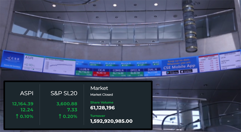 කොළඹ කොටස් වෙළෙඳපොළ මිල දර්ශකවල කැපීපෙනෙන ඉහළ යාමක් අද (11) දිනයේ දීද වාර්තා විය. එහිදී සියලු කොටස් මිල දර්ශක අගය ඒකක 129.64 කින් ඉහළ ගොස් දිනයේ ගනුදෙනු අවසානයේ දී ඒකක 12,294.03 ක් ලෙසත් S&P SL20 දර්ශකය ඒකක 39.77 කින් ඉහළ ගොස් ඒකක 3,640.65 ක් ලෙසත් වාර්තා විය. අද දින ගනුදෙනු පිරිවැටුම රු. බිලියන 2.30 කි….