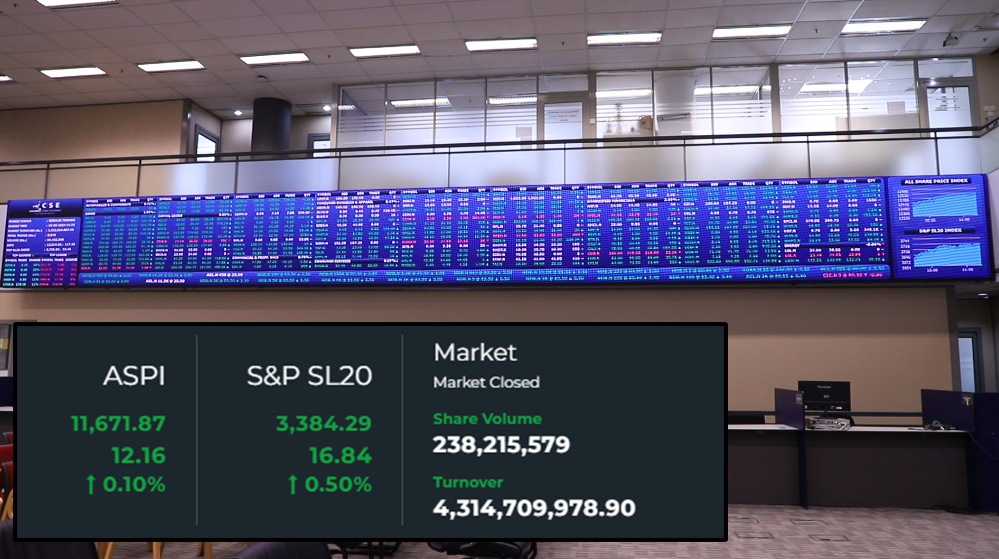 මෙම සතියේ අඛණ්ඩව සිව්වන දිනයටත් කොළඹ කොටස් වෙළෙඳපොළ මිල දර්ශකවල ඉහළ යාමක් අද (26) දින වාර්තා විය. එහිදී සියලු කොටස් මිල දර්ශකය ඒකක 12.16කින් ඉහළ ගොස් ඒකක 11,671.87ක් ලෙසින් සටහන් වූ අතර S&P SL20 මිල දර්ශකය ඒකක 16.84කින් ඉහළ ගොස් ඒකක 3,384.29ක් ලෙසින් සටහන් විය. අද දින රු. බිලියන 4.3 ක ගනුදෙනු පිරිවැටුමක් වාර්තා වීම විශේෂත්වයකි. එහිදී…