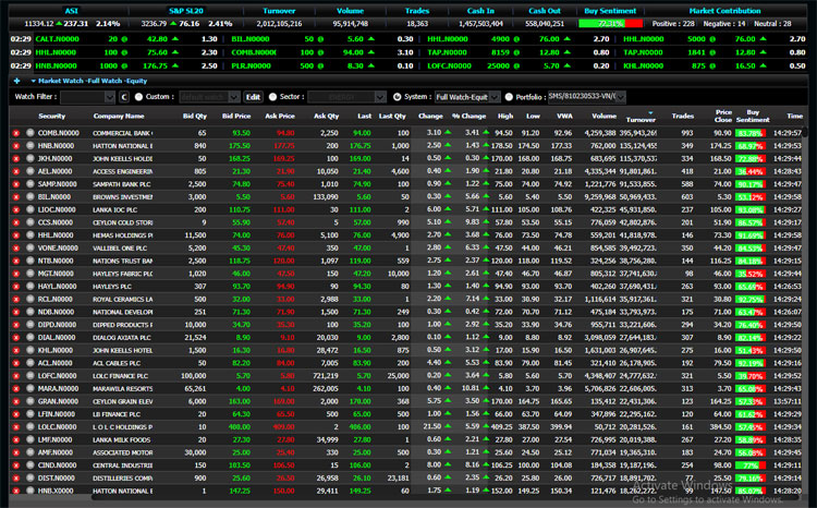 කොළඹ කොටස් වෙළෙඳපොළ මිල දර්ශකවල දැවැන්ත ඉහළ යාමක් අද (24) දිනයේ දී වාර්තා විය. ඒ අනුව දිනය තුළ සියලු කොටස් මිල දර්ශක අගය ඒකක 237.31 කින් හෙවත් 2.16% කින් ඉහළ ගිය අතර S&P SL20 දර්ශකය ඒකක 76.16කින්, එනම් 2.41% කින් අද දිනය තුළ ඉහළ යන ලදී. දිනයේ ගනුදෙනු අවසානයේ දී ඒ අනුව සියලු කොටස් මිල…