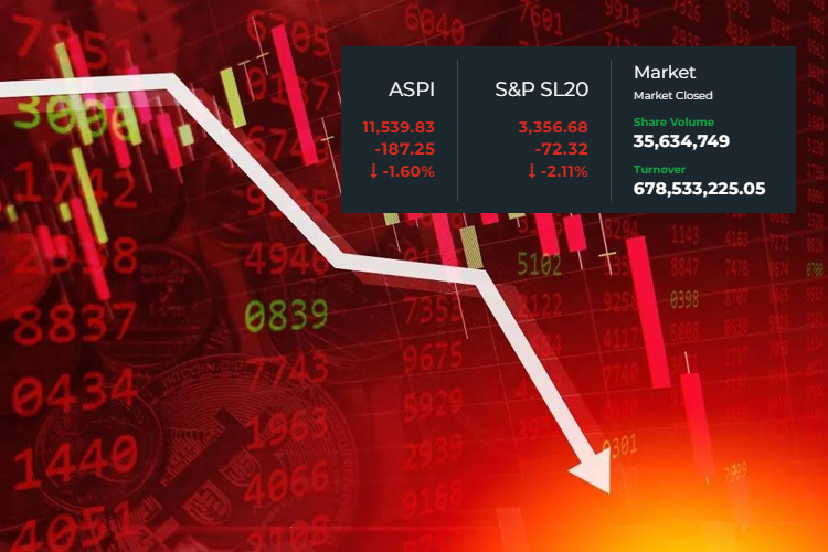 කොළඹ කොටස් වෙළෙඳපොළ මිල දර්ශකවල දැවැන්ත පසුබෑමක් අද (22) දිනයේ දී වාර්තා විය. කොටස් වෙළෙඳපොළ ප්රධාන මිල දර්ශකය වන සියලු කොටස් මිල දර්ශක අගය අද දිනය තුළ ඒකක 187.25 ක දැවැන්ත පහළ යාමක් වාර්තා කළ අතර දිනය අවසානයේ දී ඒකක 11,539.83 ක් ලෙසින් එහි අගය වාර්තා වුණි. මෙය පූර්ව ගනුදෙනු දිනය වූ පසුගිය ජූලි 19…