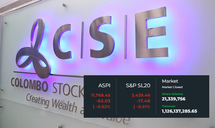 මෙම සතිය තුළ අඛණ්ව තෙවන දිනයටත් කොළඹ කොටස් වෙළෙඳපොළ මිල දර්ශකවල පහළ යාමක් අද (18) දිනයේ දී වාර්තා විය. දිනයේ ගනුදෙනු අවසානයේ දී සියලු කොටස් මිල දර්ශක අගය ඒකක 62.03 කින් පහළ ගොස් ඒකක 11,768.45 ක් ලෙසත්, S&P SL 20 දර්ශක අගය ඒකක 17.48 කින් පහළ ගොස් ඒකක 3,439.46 ක් ලෙසත් සටහන් විය. අද දින…