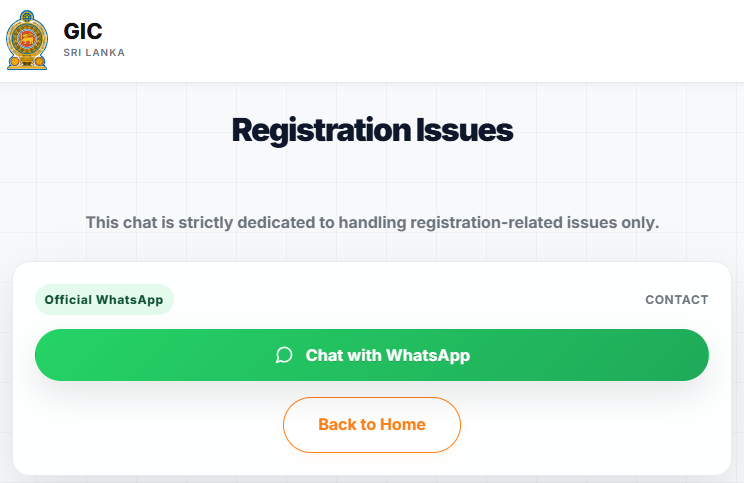 රාජ්ය තොරතුරු කේන්ද්රය (GIC) මගින් ජාතික ඉන්ධන බලපත්රය (National Fuel Pass) සඳහා ලියාපදිංචි වීමට සහාය අවශ්ය රථවාහන හිමියන් වෙනුවෙන් විශේෂ WhatsApp සේවාවක් හඳුන්වා දී ඇත. ඒ අනුව, ලියාපදිංචි වීමේදී ගැටලු පවතින පුද්ගලයන්ට පහත සඳහන් ක්රියාපටිපාටිය අනුගමනය කරමින් සිය සහාය ලබාගත හැක.