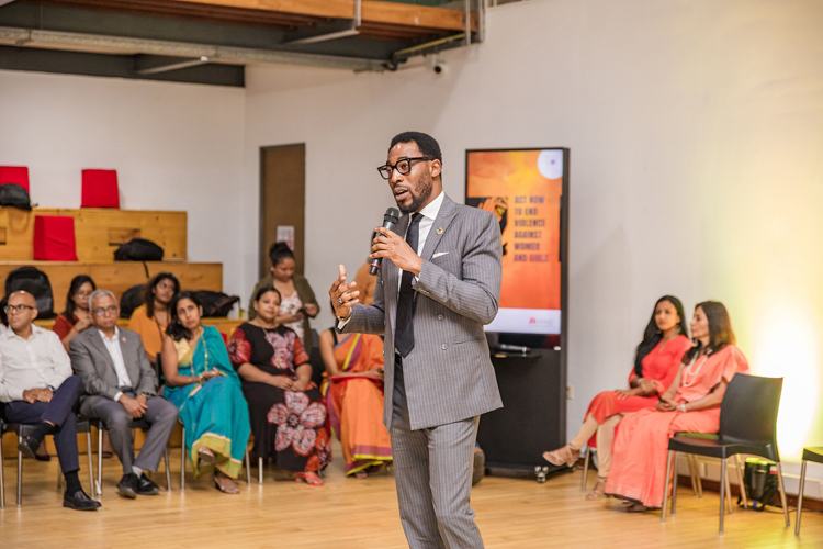 Kunle Adeniyi මහතා රැස්ව සිටි පිරිස අමතමින්