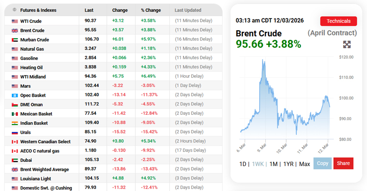 අද (12) දිනයේ දී ගෝලීය වෙළෙඳපොළේ බොරතෙල් මිල ගණන් නැවත වතාවක් සීඝ්ර ඉහළ යාමක් පෙන්නුම් කර තිබේ. ශ්රී ලංකා වේලාවෙන් අද (12) පෙරවරුව 10.30 පමණ වන විට ලෝක වෙළෙඳපොළේ WTI බොරතෙල් බැරලයක මිල ඩොලර් 95 ක් දක්වා 7.95%කින් ද බ්රෙන්ට් බොරතෙල් බැරලයක මිල ඩොලර් 100ක් ඉක්මවා 8.88%කින් ද ඉහළ ගොස් තිබුණි. මේ අතර ශ්රී ලංකාවට ආනයනය…