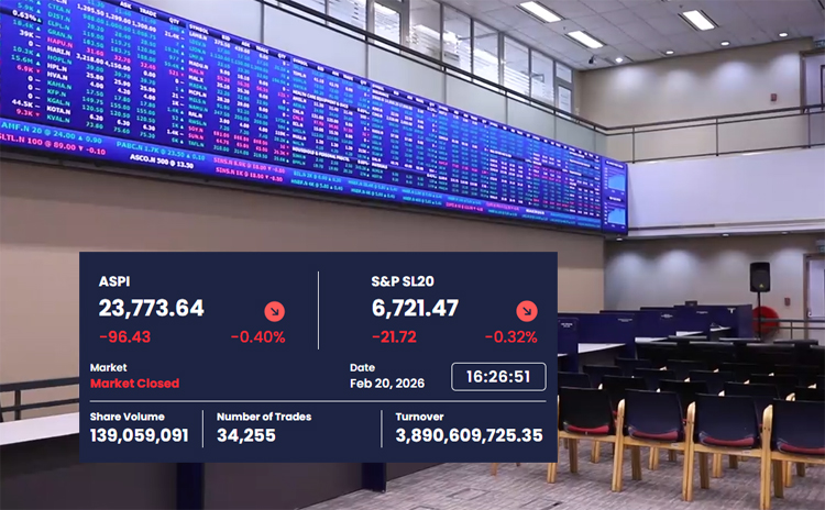 අඛණ්ඩව දෙවන දිනයටත් කොළඹ කොටස් වෙළෙඳපොළ මිල දර්ශකවල පහළ යාමක් අද (20) දිනයේ දී වාර්තා විය. එහිදී සියලු කොටස් මිල දර්ශක අගය ඒකක 96.43ක පහළ යාමක් වාර්තා කළ අතර S&P SL20 දර්ශකය ඒකක 21.72ක පහළ යාමක් වාර්තා කළේය. ඒ අනුව දිනයේ දී ගනුදෙනු අවසානයේ දී සියලු කොටස් මිල දර්ශක අගය ඒකක 23,773.64ක් ලෙසත් S&P SL20…