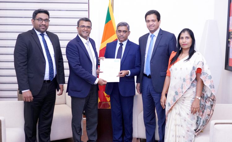ඡායාරූප සටහන: (වමේ සිට දකුණට) ආචාර්ය සමීර ධර්මසේන (CEO – SLICGL), ආචාර්ය හර්ෂණ සූරියප්පෙරුම (භාණ්ඩාගාර ලේකම් – මුදල්, සැලසුම් සහ ආර්ථික සංවර්ධන අමාත්යාංශය), නුසිත් කුමාරතුංග (සභාපති – SLIC), නලින් සුබසිංහ (CEO – SLICLL) සහ ශ්රියානි කුලසිංහ (CFO – SLICLL).